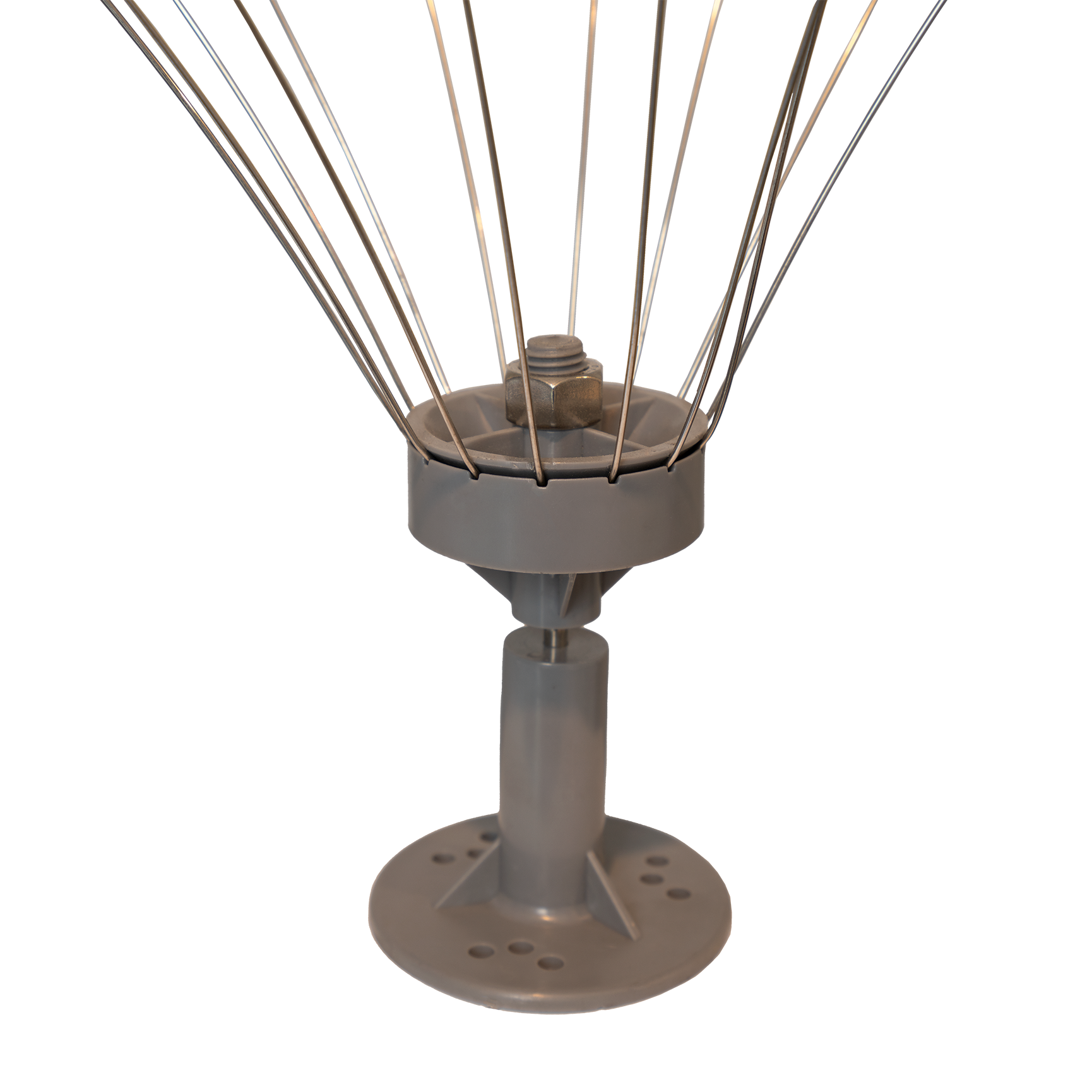 Daddi Long Legs are a spinning wire deterrent designed to disrupt the flight of larger birds like Seagulls. When installed on a roof or light pole, birds with a larger wing span can't safely land or take off - so they will avoid the area altogether.